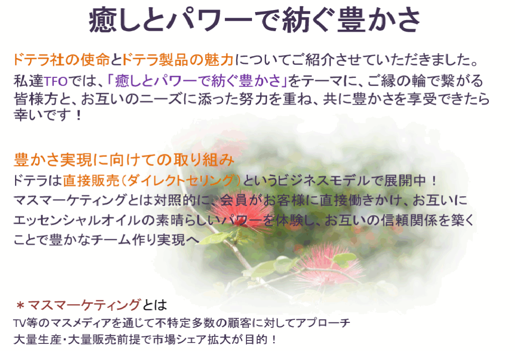 ドテラのご紹介 No5 会社概要と製品購入法